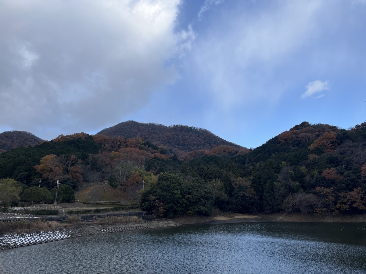少し歩き道標に従い右に曲がりゆるやかな坂道を歩いて行きます。しばらく歩くと左手に傘堂が出てきますので右に曲がると写真の大池が出てきます。
