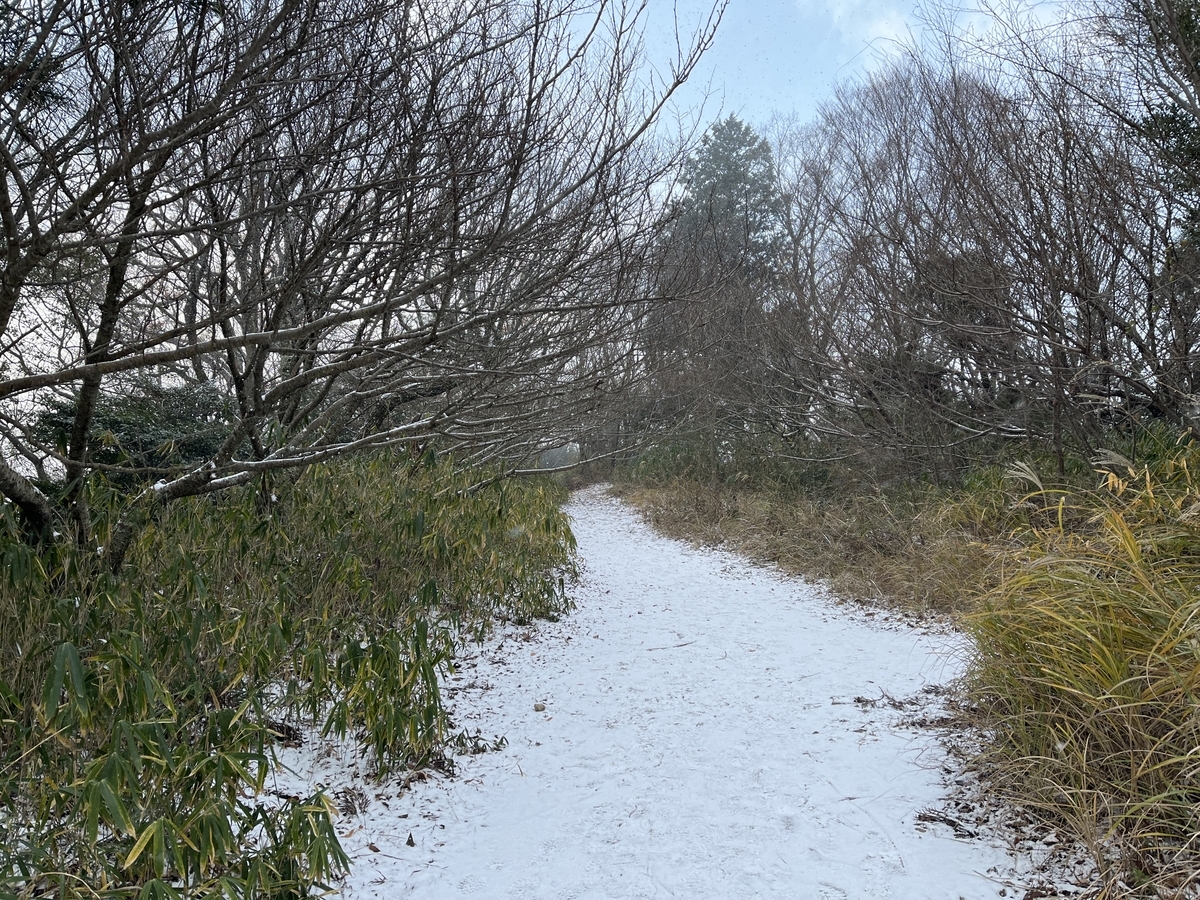 雄岳付近になると雪が多くなってきました。このあたりは雪がちらついていました。
