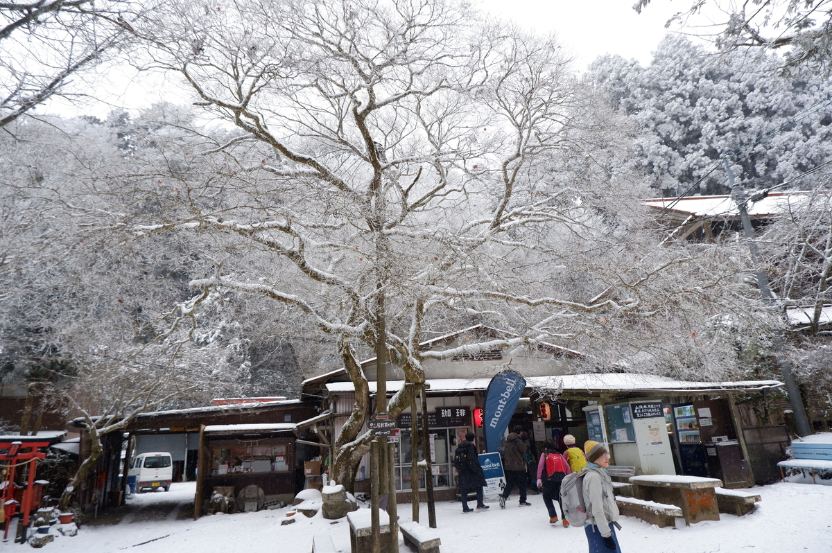 もみじ谷ルート入り口に到着。ここでチェーンスパイクを装着しました。
