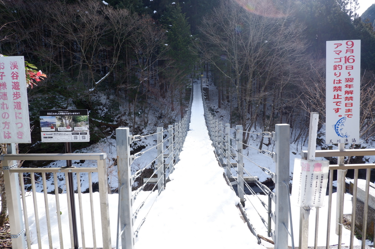 つり橋を渡って登山口に向かいます。奥さんがいたらこの時点でビビリまくりです(;^ω^)