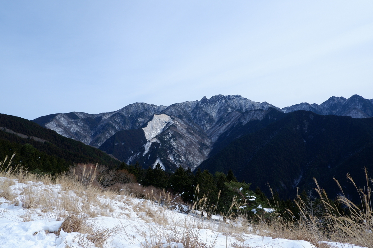 しばらく進み振り返ると観音平と大峰の山々が見えました。