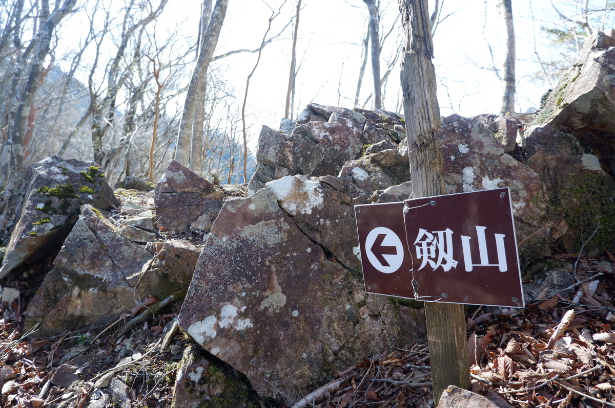 尾根に出ました。看板が割れていて剣山になっています(;^ω^)