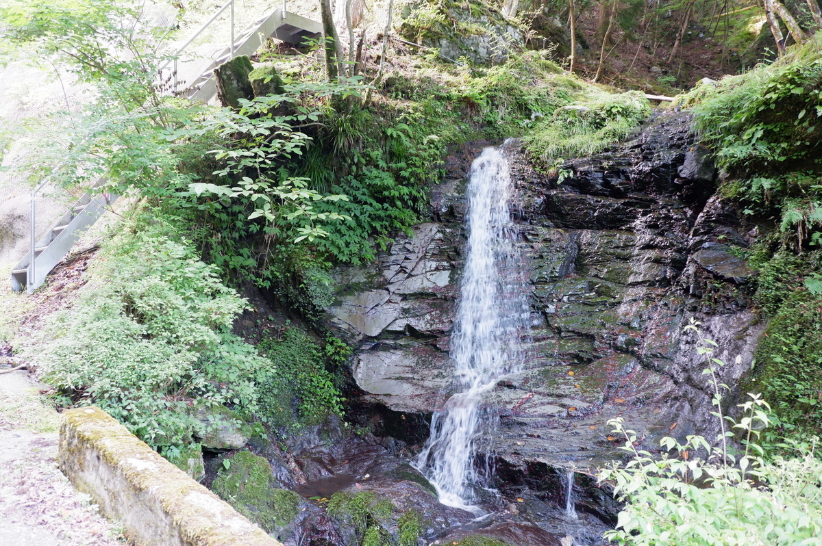 しばらく進むと右手に滝が見えてきます。滝の先には階段があります。この階段から激登っていくと薊岳に向かうことができます。