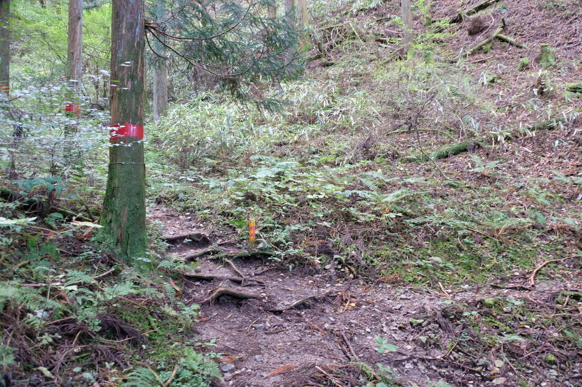 ガンドガコバ林道はダイヤモンドトレイルと重複しています。ガンドガコバ林道はダイヤモンドトレイル、カヤンボ、もみじ谷と分岐しますがガンドガコバ林道を突き進むと太尾塞跡に出てそのまま太尾道で山頂を目指すことができます。