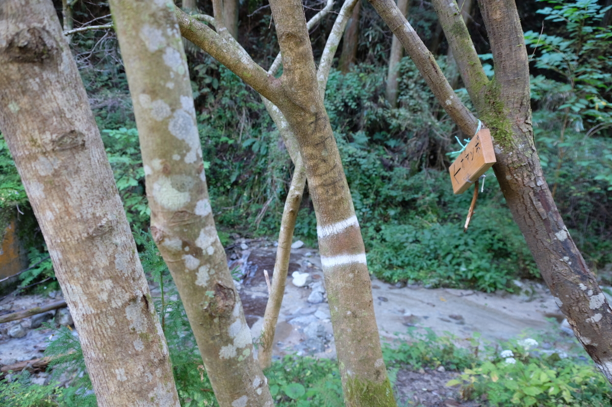 カヤンボの木の道標があります。ここを沢に下りていきます。